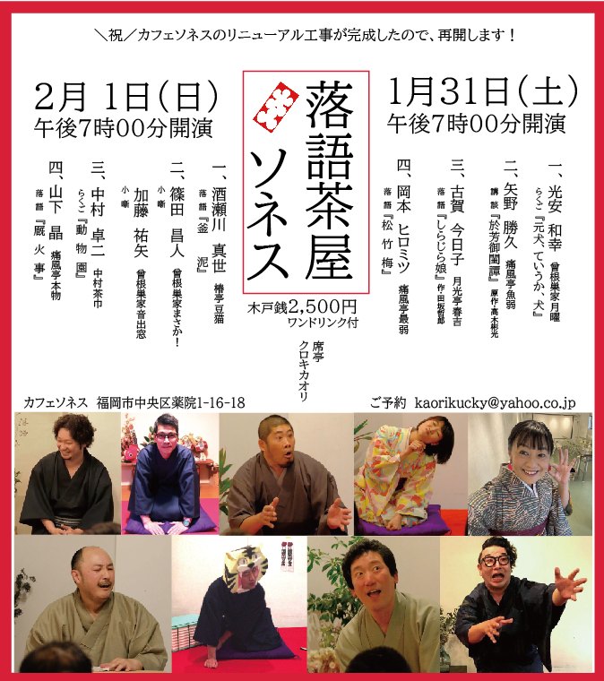 このたび1月31日~2月1日に開催いたします「落語茶屋ソネス」